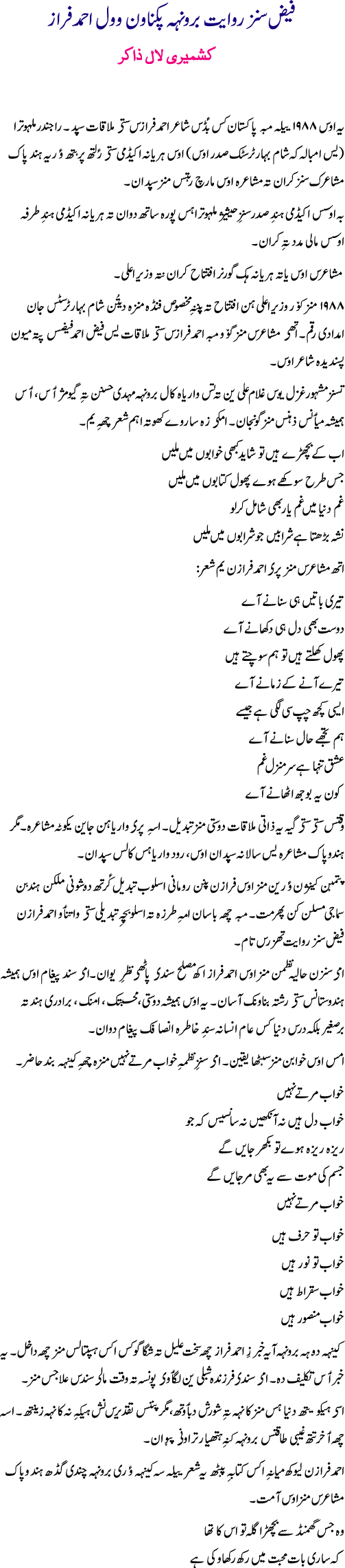 | Disclaimer: The opinions expressed in the news and the articles published on this site are authors' and do not respresent those of the owner or the editors of this site. Koshur Akhbar is not a political, religious or commercial venture. It's mainly published to help promote and increase mother tongue literacy among the speakers of the Kashmiri language worldwide. Acknowledgements: We are thankful to all the authors for their support and also to the readers who have shown great appreciation for our efforts. Contact Editor at editor@neabinternational.org | ||||||||||