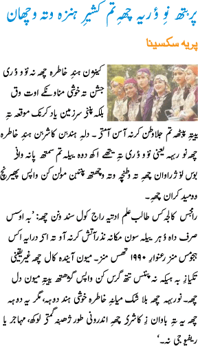 Disclaimer: The opinions expressed in the news and the articles published on this site are authors' and do not respresent those of the owner or the editors of this site. Koshur Akhbar is not a political, religious or commercial venture. It's mainly published to help promote and increase mother tongue literacy among the speakers of the Kashmiri language worldwide. Acknowledgements: We are thankful to all the authors for their support and also to the readers who have shown great appreciation for our efforts. Contact Editor at editor@neabinternational.org |